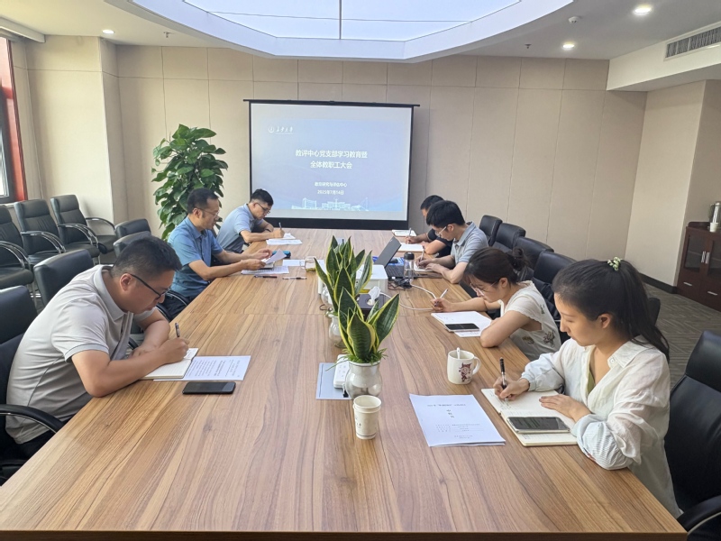 7月14日,教评中心党支部专题学习暨全体教职工大会在北辰楼第五会议室召开。会议由教评中心主任赵现伟主持,全体教职工参会。本次会议以“政策领学强基、总结部署赋能”为主线,通过系统学习上级文件精神、细致部署重点工作任务,为推进下一阶段工作明确了方向和要求。