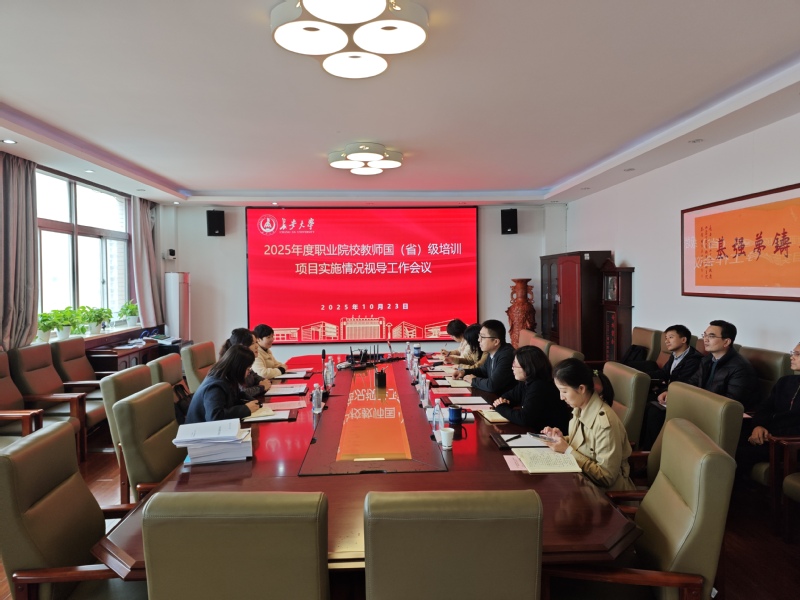 10月23日下午,陕西省教育厅2025年职业院校教师国(省)培项目视导专家组对我校承训的国(省)培项目开展情况进行检查指导。视导专家组西北农林科技大学成人教育(继续教育)学院副院长陈辉娟担任组长。会议在南校区西院第五教学楼会议室举行,由教育研究与评估中心副主任刘洋主持。